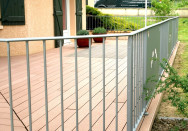 Mise en place d’un portillon desservant l’escalier. L’ensemble du garde-corps en acier est posé à la française sur la terrasse. Un traitement en galvanisation et époxy a été réalisé sur l’ensemble du garde-corps et du portillon.