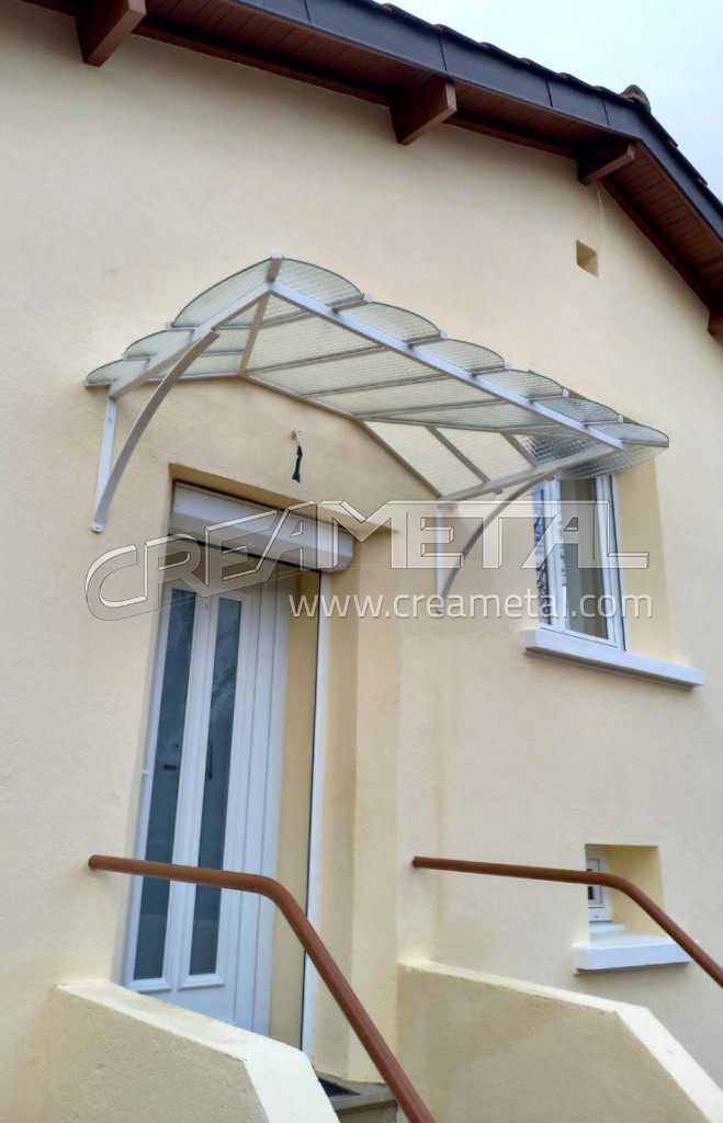 La marquise en acier bénéfice d’un traitement anticorrosion par métallisation et d’un laquage époxy fine texture RAL 9016 (blanc)